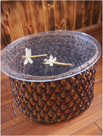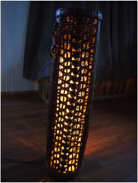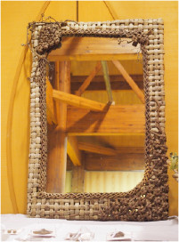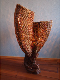 - 木の皮を一つひとつ丁寧にむいていきます。残った芯も素材として作品に使います。